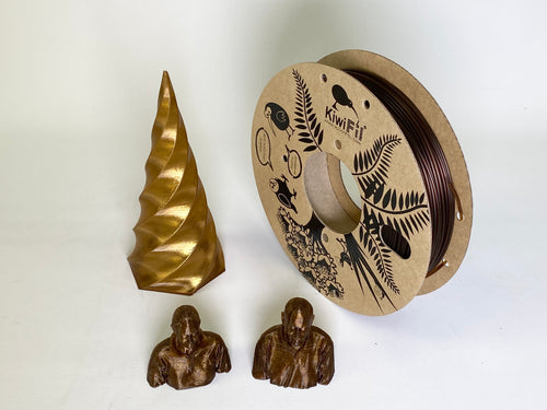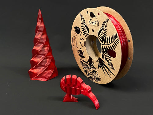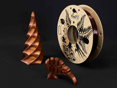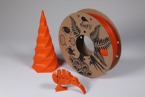 KiwiFil rPETG filament is made from 100 % recycled plastic. The material is a mix of local New Zealand scrap from the fabrication of restaurant menu holders, store display cases, and pharmaceutical containers, and post-industrial scrap from the manufacturing of PETG sheets in Australia.
