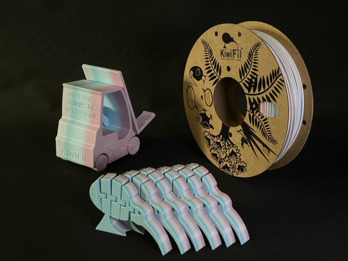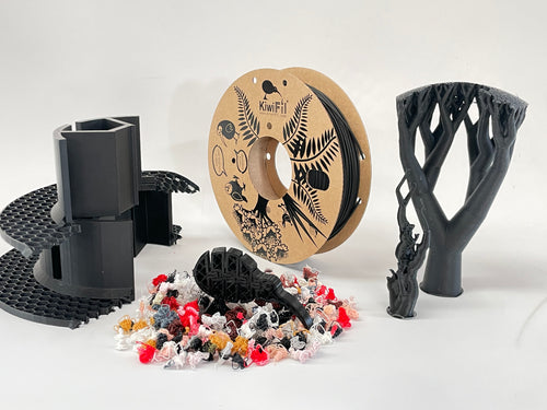 Our rPLA pro filament is made in New Zealand. The main source of material is post-industrial waste from the manufacturing of food packaging such as coffee cup lids. It prints like regular PLA pro filament, and gives strong parts and a glossy finish.